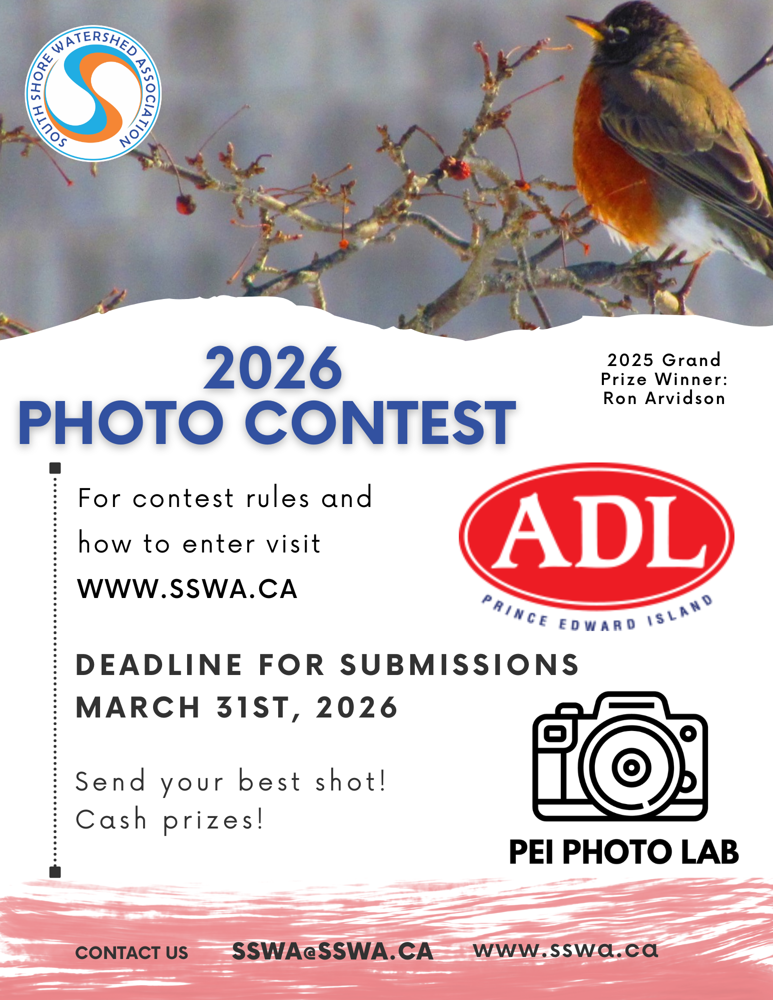 Photos must be taken anywhere within the SSWA regional boundary. SSWA covers the following five watersheds: DeSable River, Westmoreland River, Tryon River, Augustine Cove- Cape Traverse, and Seven Mile Bay. See map.